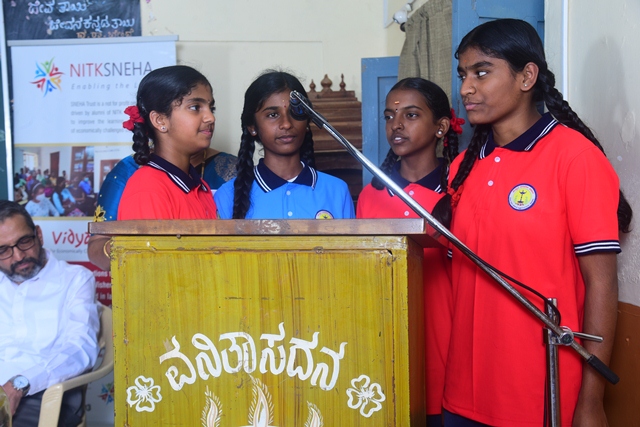 Mr. Jitin Saladana of Kluber Lubrication, Mysore and Mr. Sudheer Hullemane of “One School at a Time” attended the ceremony as Guests of Honour. Mr. Hemant Korwar, Trustee of both Sneha and ourTrust, took the lead in organizing the function.