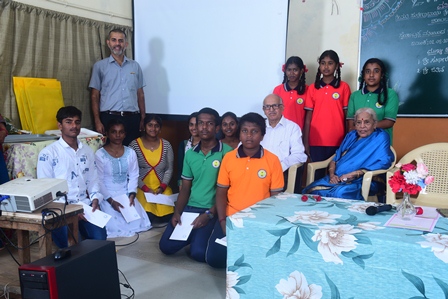 On 2/8/25, the members of Sneha Trust (who supports VS) facilitated 1o merit students of our school by giving them cash awards at the school premises. Ten students- 5 each from last year’s SSLC students and current SSLC students were selected for awards based on their academic performance. SSLC passed students were given Rs.10,000/ each and current students were given Rs.5000/ each.